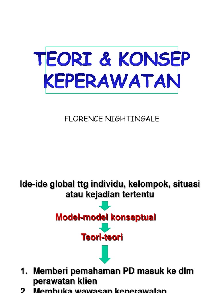 Menjelaskan Konsep teori keperawatan menurut Florence Nightingale 3. Florence creció en una época de intensos cambios sociales en un entorno de ideas liberales y. A smile passed fleetingly over the face of the wounded young sol- dier as he heard these comforting words Youre going to be all right.