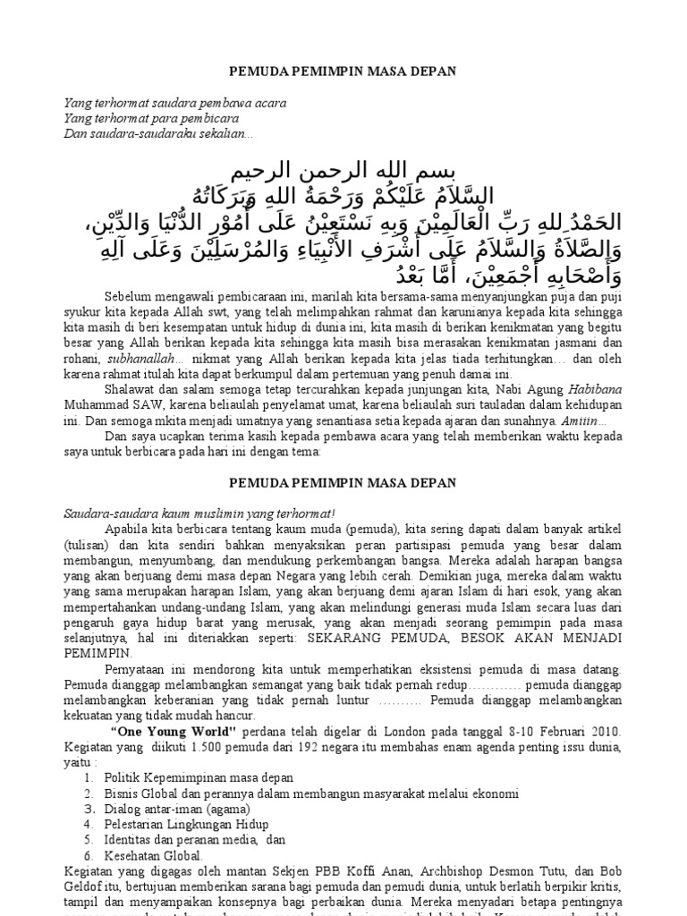 وعن أبي عبد الرحمن عبد الله بن. Tema pidato atau ceramah saya kali ini yaitu KRITERIA PEMIMPIN MENURUT ISLAM. Generasi milenial menjadi hal yang menarik untuk di bahas akhir-akhir ini.