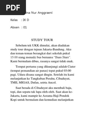 Dalam laporan karya tulis ini membahas tentang beberapa Obyek wisata dan Obyek Study tour yang berada di JAKARTA-BOGOR-BANDUNG dan sekitarnya. Nadila050504 ya Cerpen Study Tour merupakan cerita pendek karangan Nadila Maulida kamu dapat mengunjungi halaman khusus penulisnya untuk membaca cerpen cerpen terbaru buatannya. Kalian bisa memanggilku dengan nama.