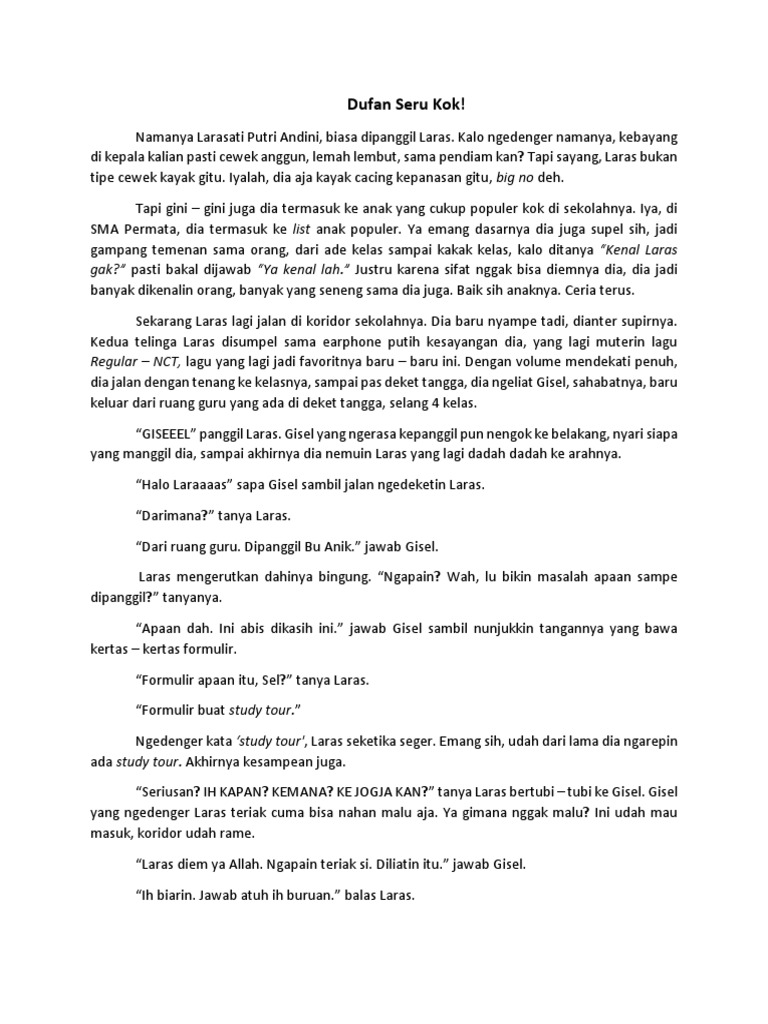 Namun ayah sendiri tetap bersikeras menyuruhku ikut study tour. Pada malam itu malam yang semakin larut dan menunjukkan pukul 0900 malam. Study Tour 2020 Study Tour ke Jatim Park ARINA NUR ADHA JUARA LOMBA MENULIS CERPEN TINGKAT KABUPATEN KEBUMEN TAHUN 2020 Posted by smpn1mirit Tuesday December 1 2020 0 comments 2.