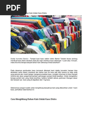 1 Lusin Kaos Membutuhkan Berapa Banyak Kain Kaospabrik
