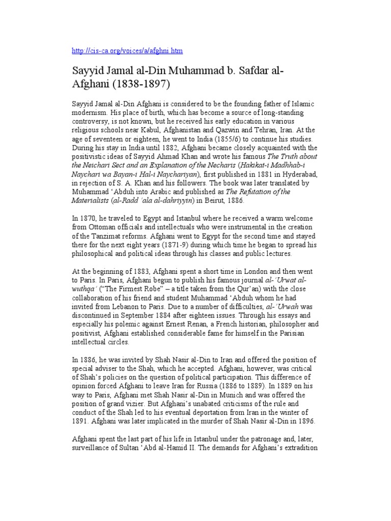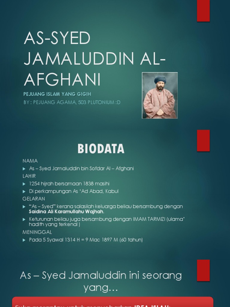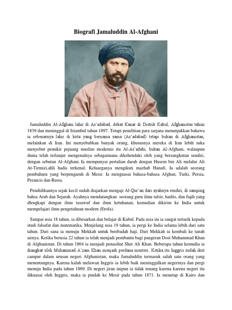Biografi Jamaluddin Al-Afghani Muhammad Bahrul. Rekaman layar saya. Di tahun 1864 ia menajdi penasehat Sher Ali Khan.