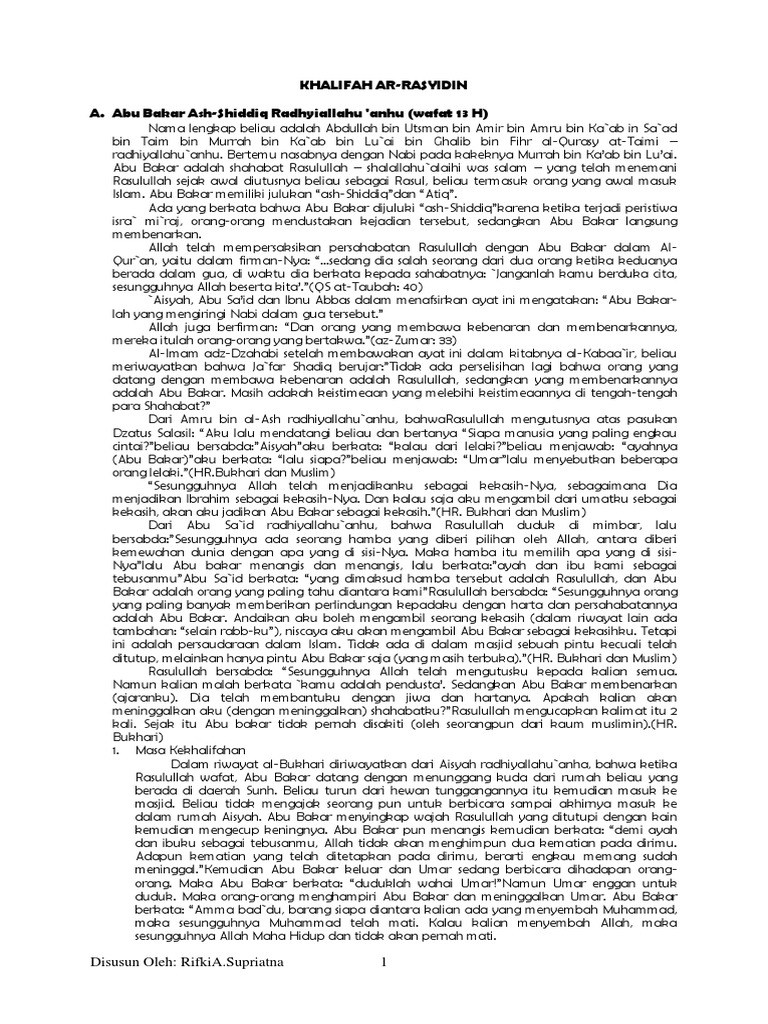 Doc Abu Bakar Ash Shiddiq R A Umar Bin Khattab R A Utsman Bin Affan R A Dan Ali Bin Abi Thalib R A Biografi Dan Keberhasilan Yandi Novia Debu Yandi Academia Edu