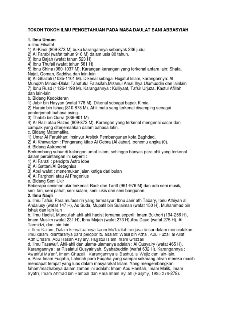 Tokoh Tokoh Islam Yang Memiliki Semangat Berijtihad Dan Mengembangkan Berbagai Ilmu Pengetahuan Antara Lain Ilmu Filsafat
