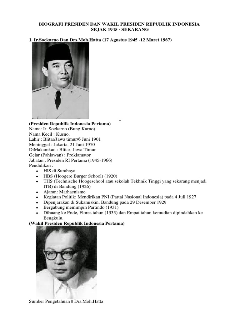 Biografi Presiden Dan Wakil Presiden Indonesia