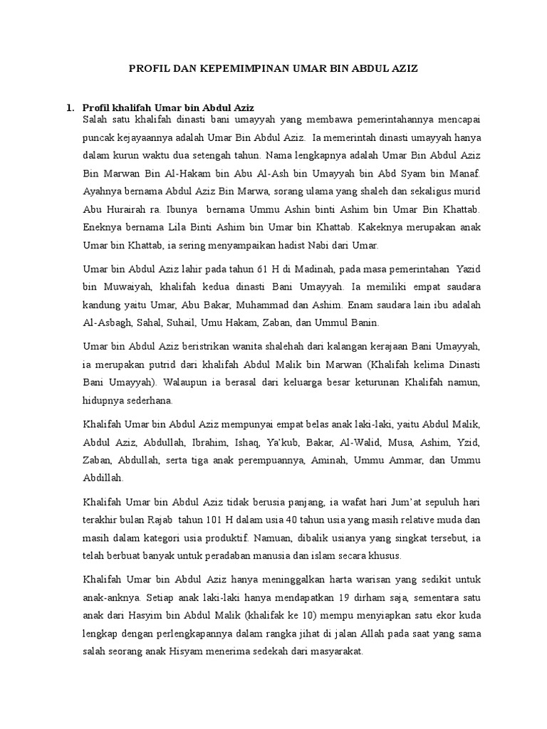 Umar Bin Abdul Aziz Profil Pola Kepimimpinan Kebijakan Dan Kepribadian Umar Bin Abdul Aziz