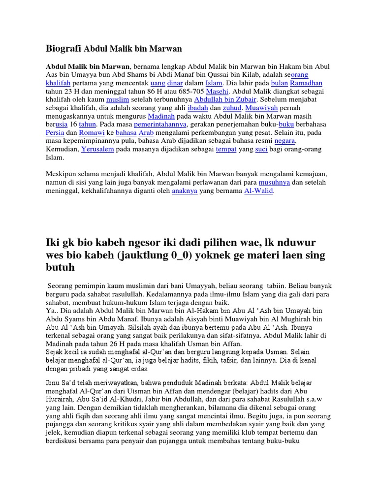 Doc Biografi Al Walid Bin Abdul Malik Jazid Einzworld Academia Edu