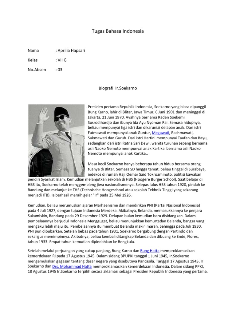 Biografi Soekarno Dalam Bahasa Inggris Singkat Dan Artinya Terbaru Biografi Bahasa Bahasa Inggris