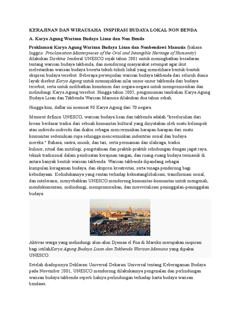 Kerajinan Dan Wirausaha Inspirasi Budaya Lokal Non Benda