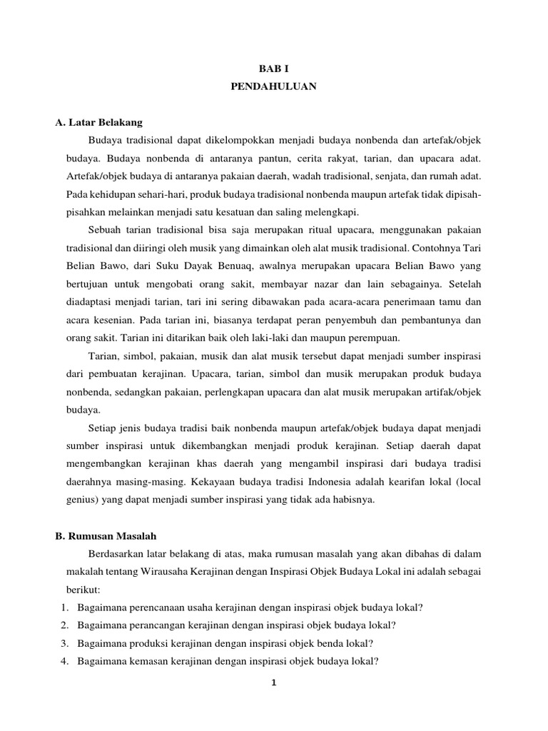 Wirausaha Kerajinan Dengan Inspirasi Objek Budaya Lokal Doc Pdf Download Contoh Makalah Lengkap