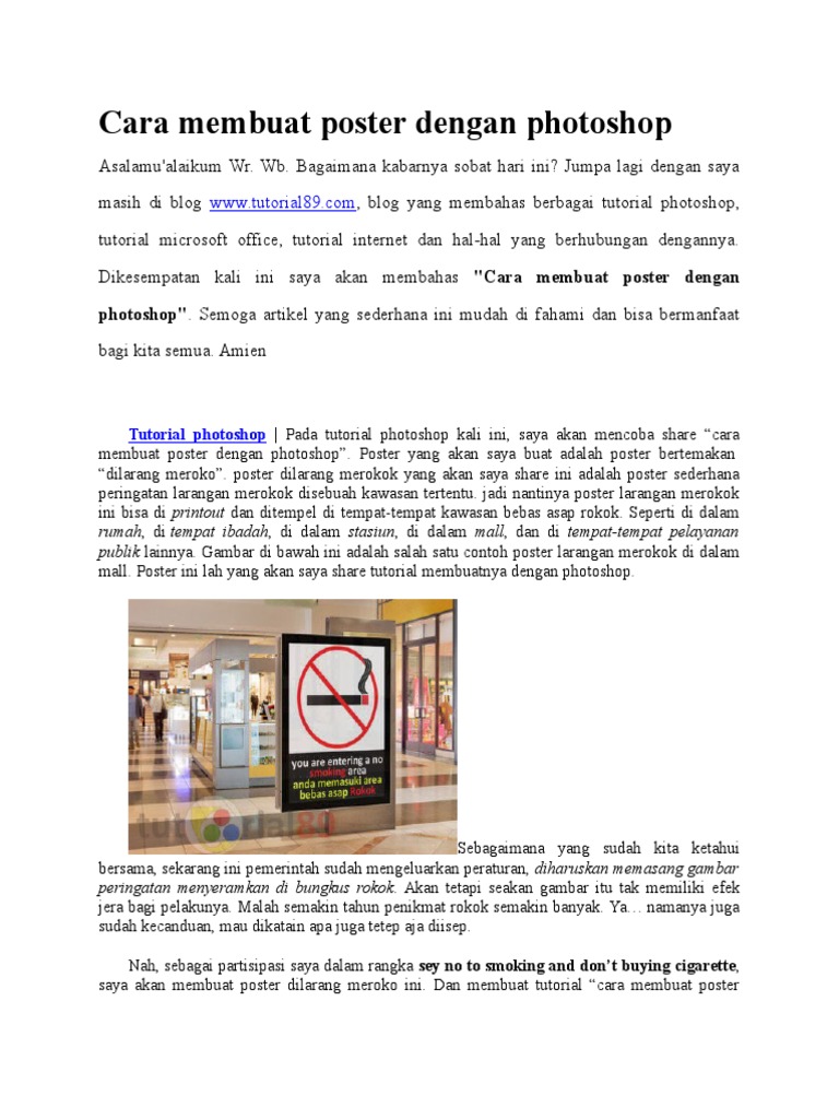 Dilengkapi dengna tutorial video 5. Poster bertemakan dilarang meroko. Di photoshop Anda dapat mengatur Dot Per Inch pada saat membuat dokumen baru dengan cara FILE New dan mengisi 300 pada kotak resolution.