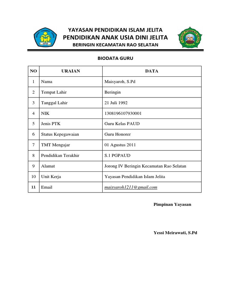 Dokumen Contoh Format Biodata Tenaga Pendidik Paud Tahun Ajaran 2016 2017 Format Microsoft Word Doc Pendidikan Microsoft Belajar