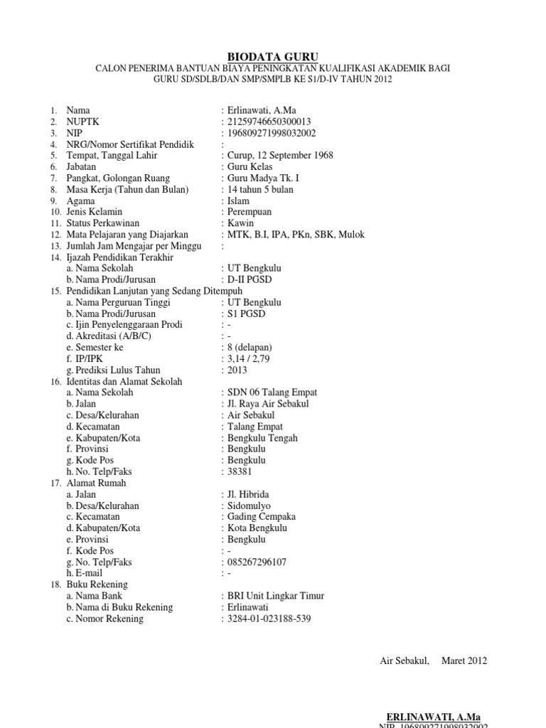 Biodata Diri Sederhana Siswa Guru Lengkap Dengan Cara Membuatnya