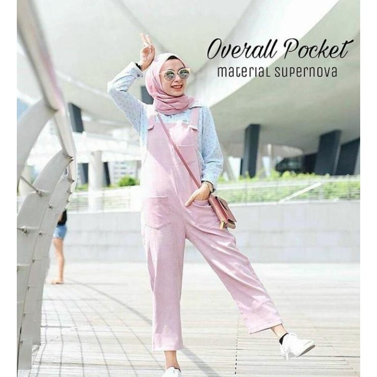 Overall Pocket Pants Celana Kodok Hijab Fashion Muslim Remaja Wanita Shopee Indonesia