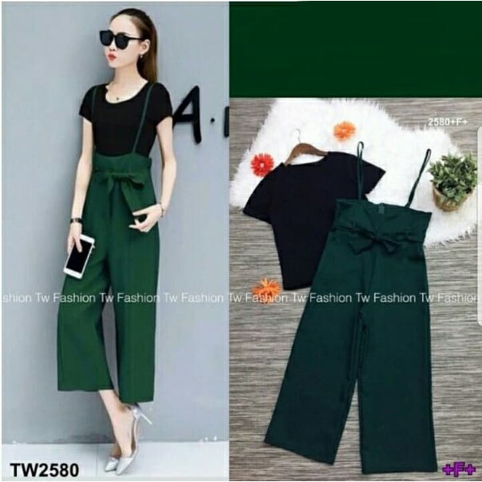 Setelan Baju Dan Celana Kodok Jumpsuit 2in1 Baju Kodok Wanita Puith Hitam Baju Set Over All Setelan Wanita Kasual Baju Celana Kodok Wanita Overall Wanita Murah
