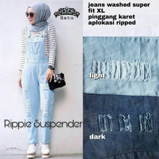 Suspender Ripped Overall Ripped Celana Kodok Sobek Ripped Overall Celana Kodok Wanita Shopee Indonesia