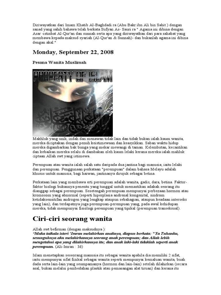 Welcome to Islam Hijrah muslimah wanita - Posts Facebook Nasehat untuk muslimah Contoh Pidato Bahasa Inggris Tentang Emansipasi Wanita 470 Kumpulan Kata Kata Mutiara. Pertama sebagai pertahanan diri dari gangguan orang-orang yang hendak berbuat jahat yang merendahkan menghancurkan kehormatan seorang wanita dalam aktivitas sehari-harinya karena mengharuskan dirinya ke luar rumah maka Islam menyuruh seorang wanita untuk menutup aurat. Sungguh merupakan bahaya besar yang tidak disadari oleh kebanyakan umat Islam ketika angin fitnah berhembus kencang menerpa mereka.