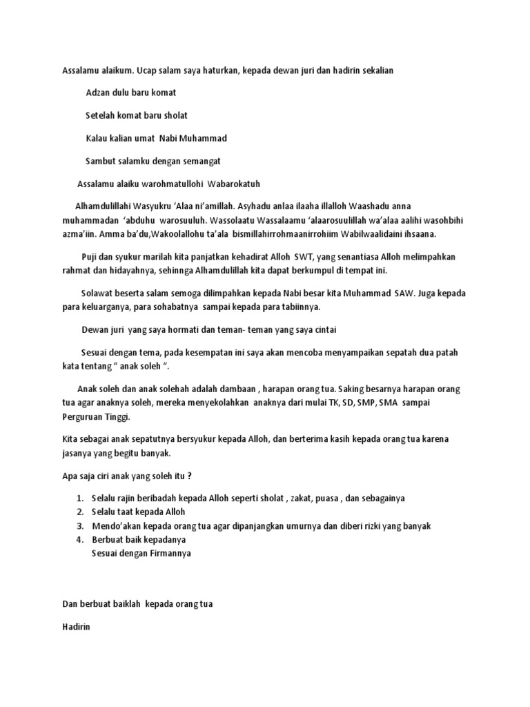 Contoh Pidato Anak Sholeh Dambaan Orang Tua Terbaik Kumpulan Referensi Teks Pidato