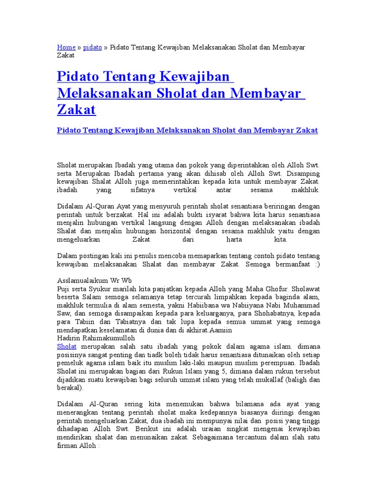 Ceramah singkat tentang zakat. Pendapat yg terkuat zakat fitrah hukum wajib. Karena tidak ada dalil yang menunjukkan Nabi Shallallahu alaihi wa sallam menggantikan zakat. Contoh Ceramah Singkat Tentang Zakat.