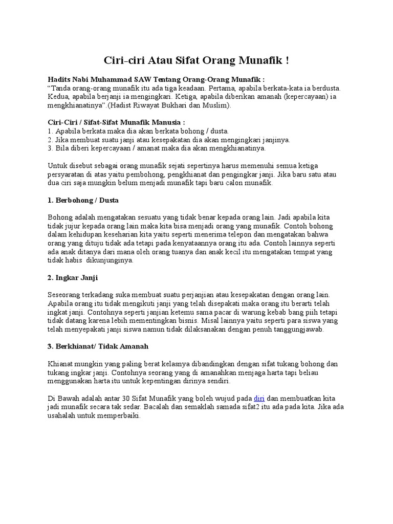 Ciri Ciri Orang Munafik Berdasarkan Al Quran Dan Al Hadist Dalam Islam