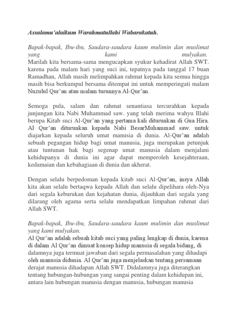 Contoh Pidato Nuzulul Quran Contoh Soal Pelajaran Puisi Dan Pidato Populer