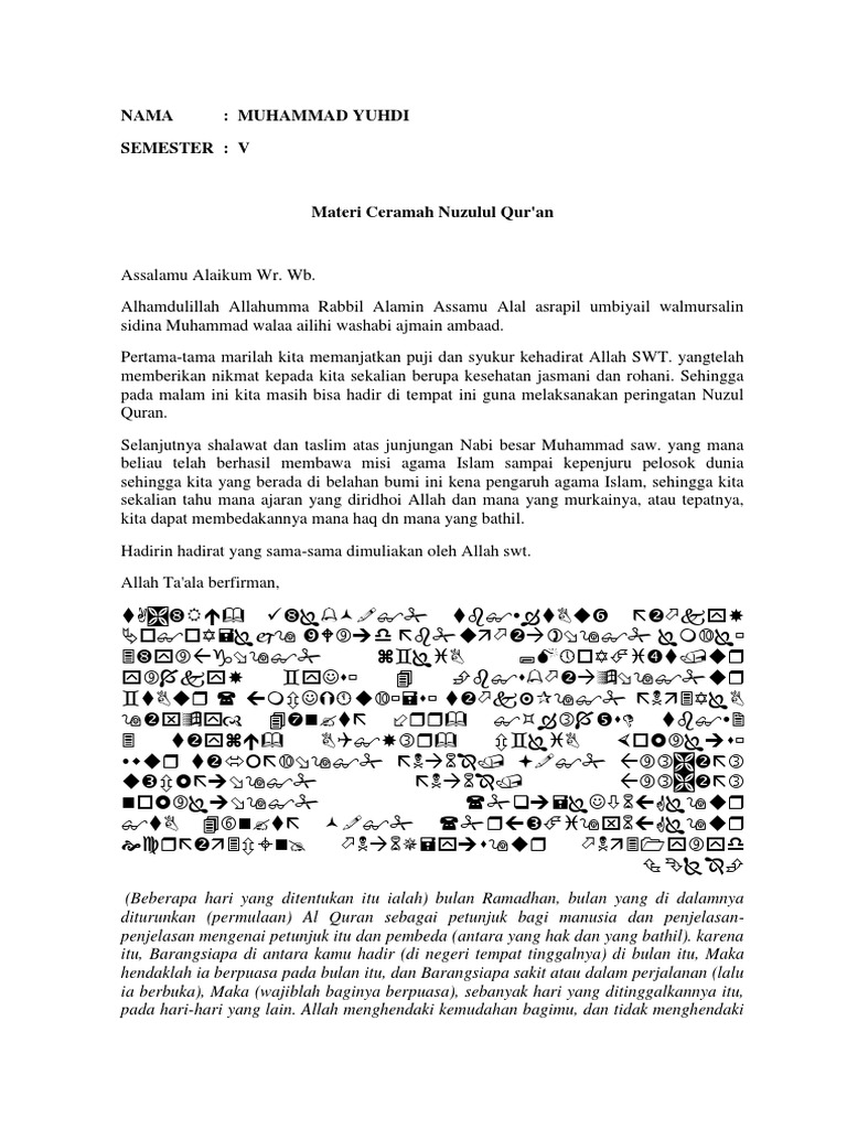 Contoh Ceramah Tentang Nuzulul Quran Rasmi O Cute766