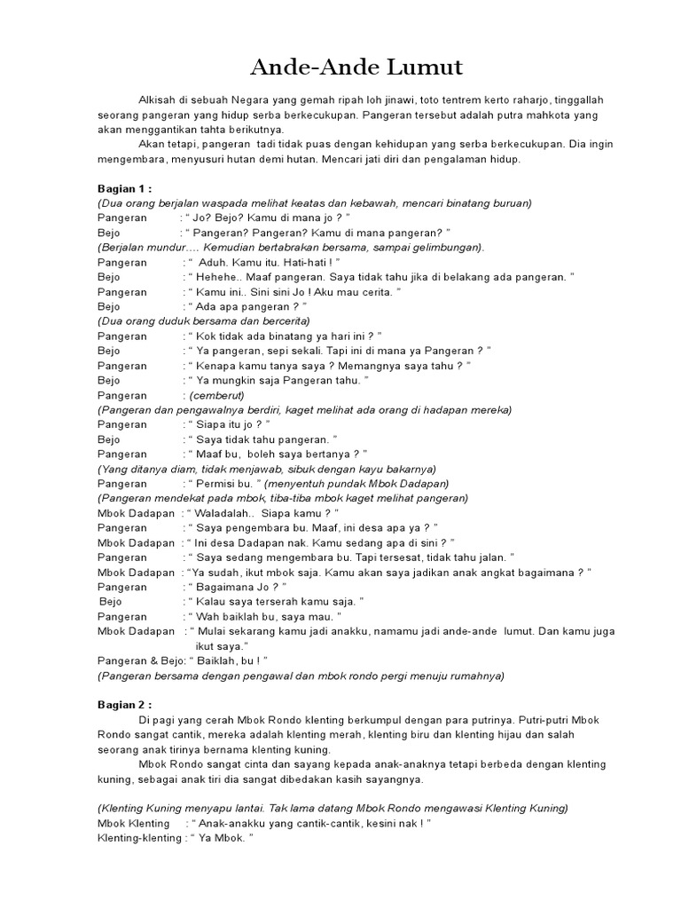 Teks Drama Ande Ande Lumut Bahasa Jawa Berbagai Teks Penting