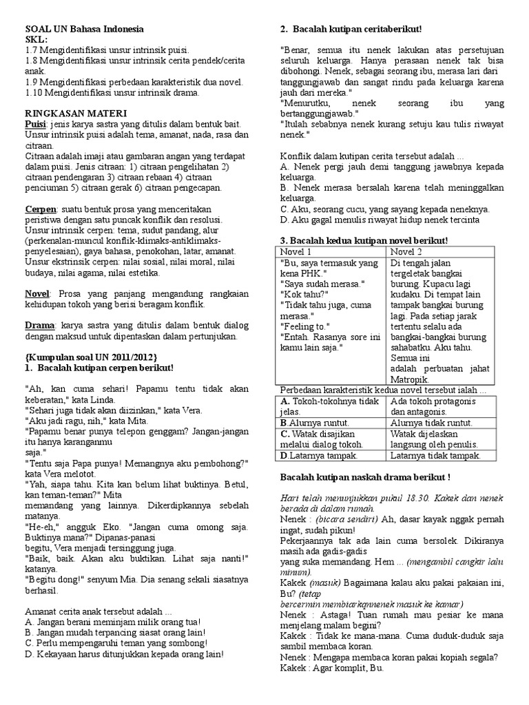 Latihan Soal Un Kls Ix Unsur Intrinsik Puisi Cerpen Novel Dan Drama