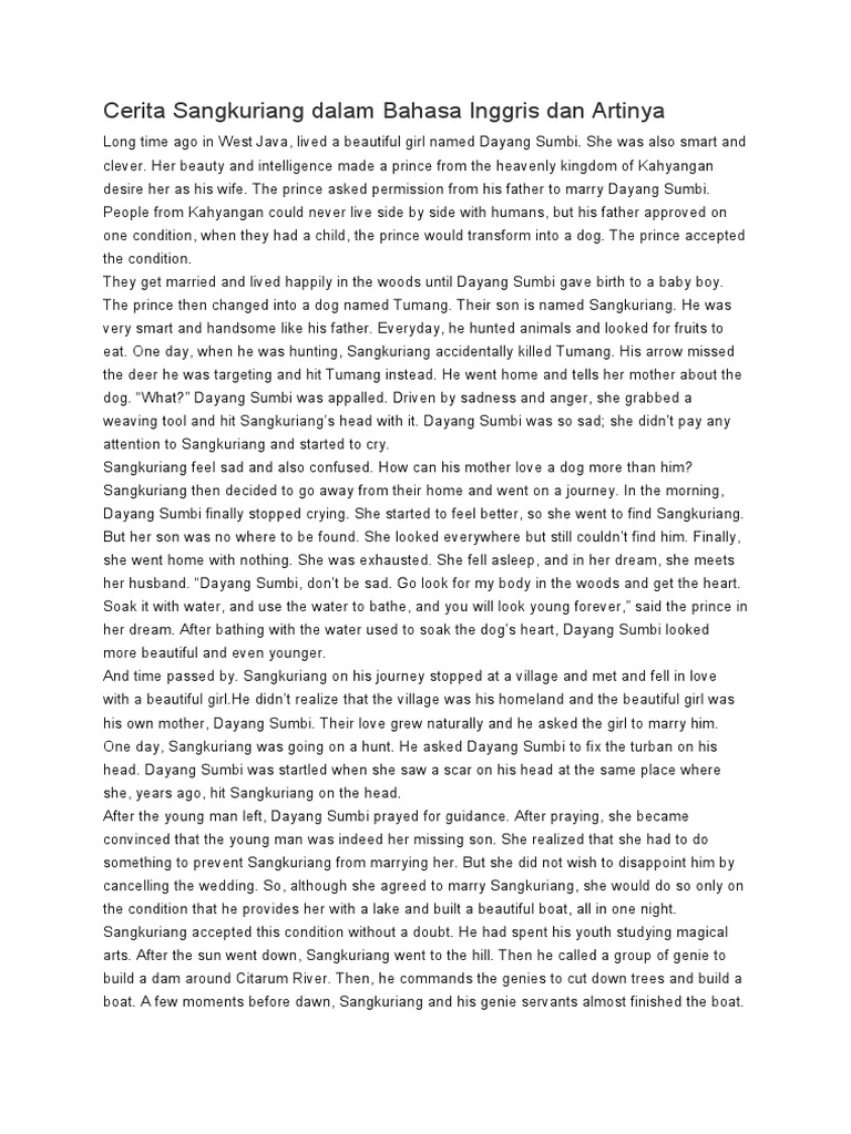 Cerita Singkat Sangkuriang Dalam Bahasa Inggris Dan Artinya Guru Galeri