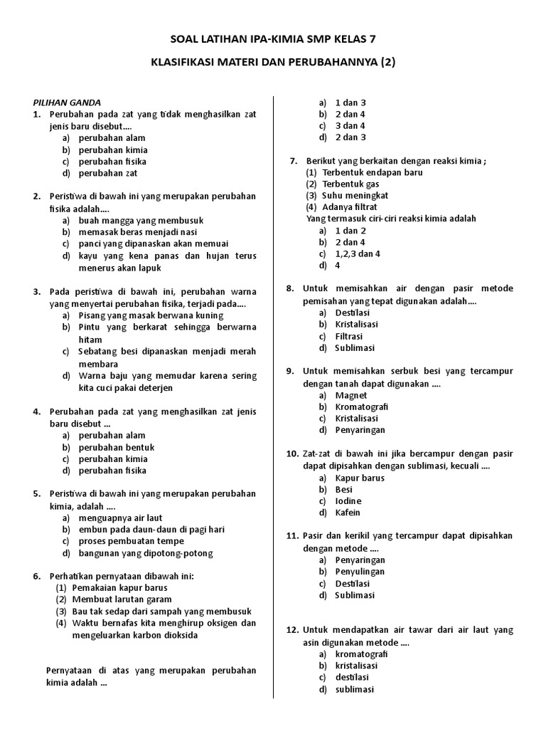 Soal Perubahan Fisika Dan Kimia Kelas 7 Kurikulum 2013 Edisi Revisi 2017 Fisika Dan Matematika