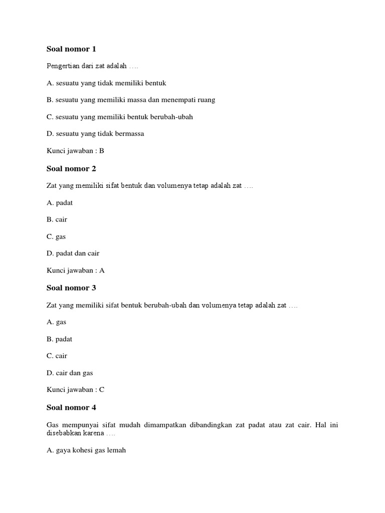 Soal Ipa Sifat Zat Dan Perubahannya Kelas 7 Smp Dan Kunci Jawaban