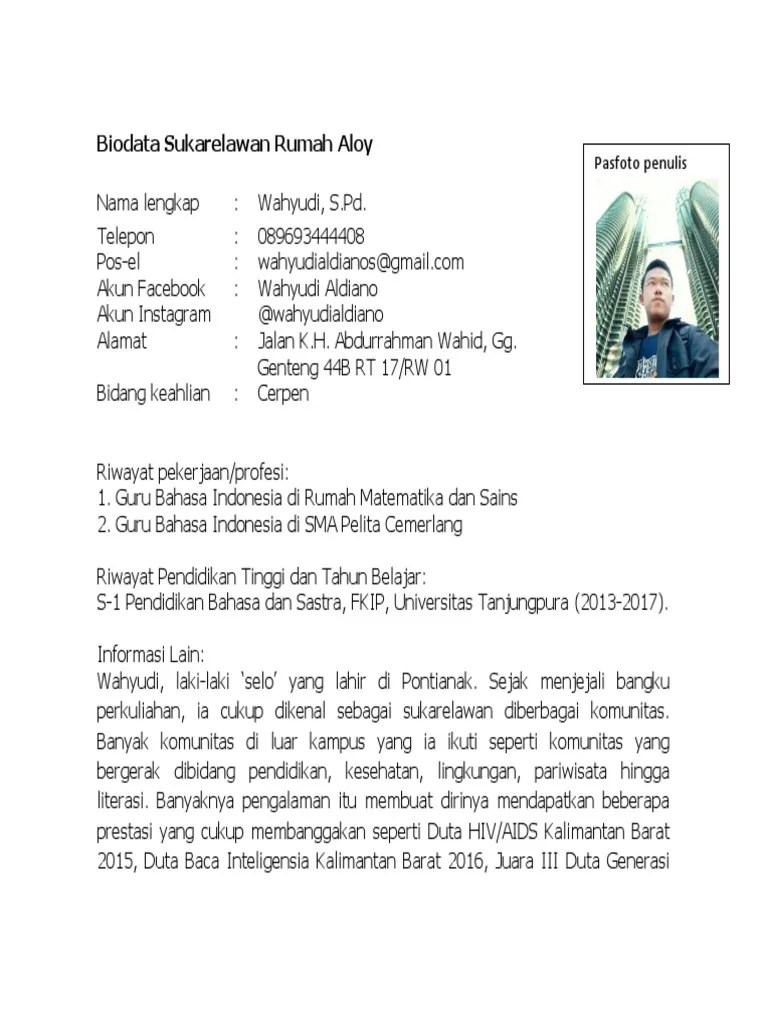 7 Contoh Biografi Singkat Seseorang Teman Orang Tua Diri Sendiri Siswa Toko