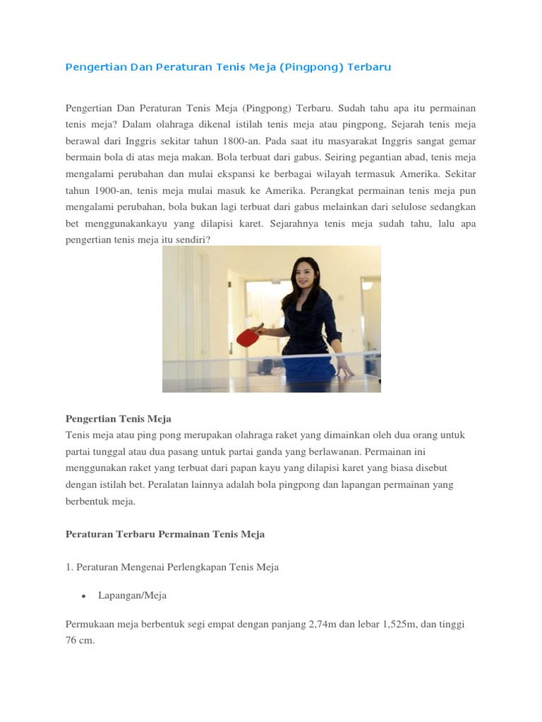 Permainan ini menggunakan raket yang terbuat dari papan kayu yang dilapisi karet yang biasa disebut bet sebuh bola pingpong dan lapangan permainan yang berbentuk meja. Pengertian Permainan Tenis Meja Tenis meja atau pingpong adalah suatu olahraga yang dimainkan oleh dua pasangan ganda atau dua orang tunggal yang berlawanan. Contoh kliping Olah raga Olahraga adalah aktivitas untuk melatih tubuh seseorang tidak hanya secara jasmani tetapi juga s.