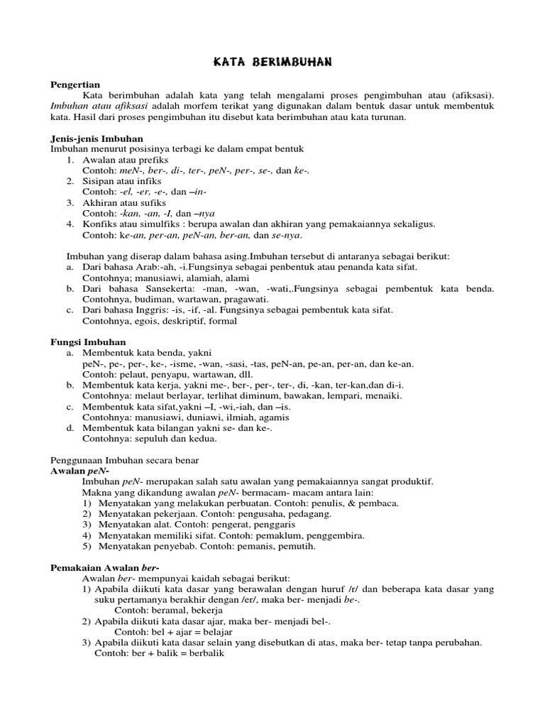 Contoh Kata Imbuhan Materi Pelajaran 4
