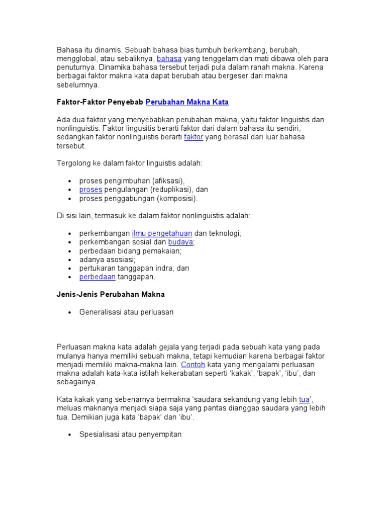 Perubahan Makna Kata Dalam Bahasa Indonesia Trigonal Media