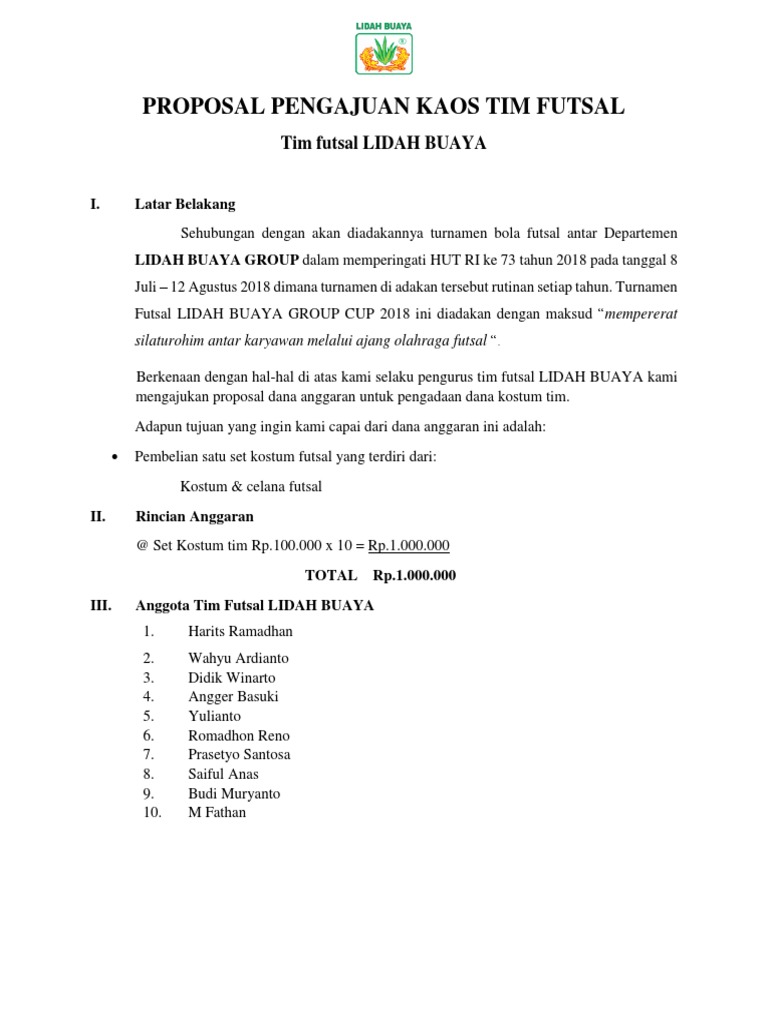 Contoh Proposal Pengajuan Dana Futsal Pdf Penggambar