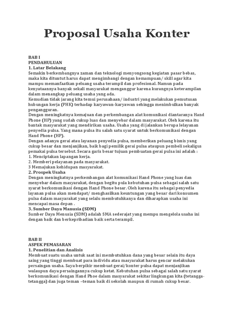 Contoh Proposal Usaha Konter Hp Yang Benar