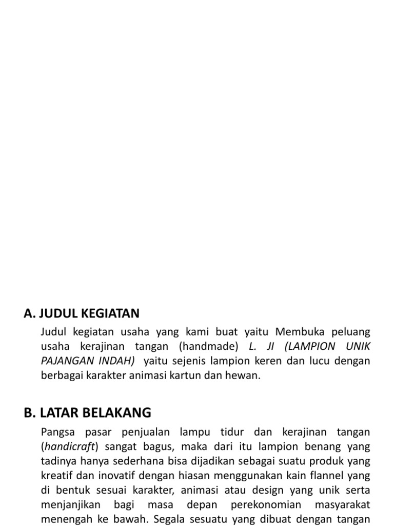 Contoh Proposal Usaha Kerajinan Lampu Hias Berbagi Contoh Proposal Cute766