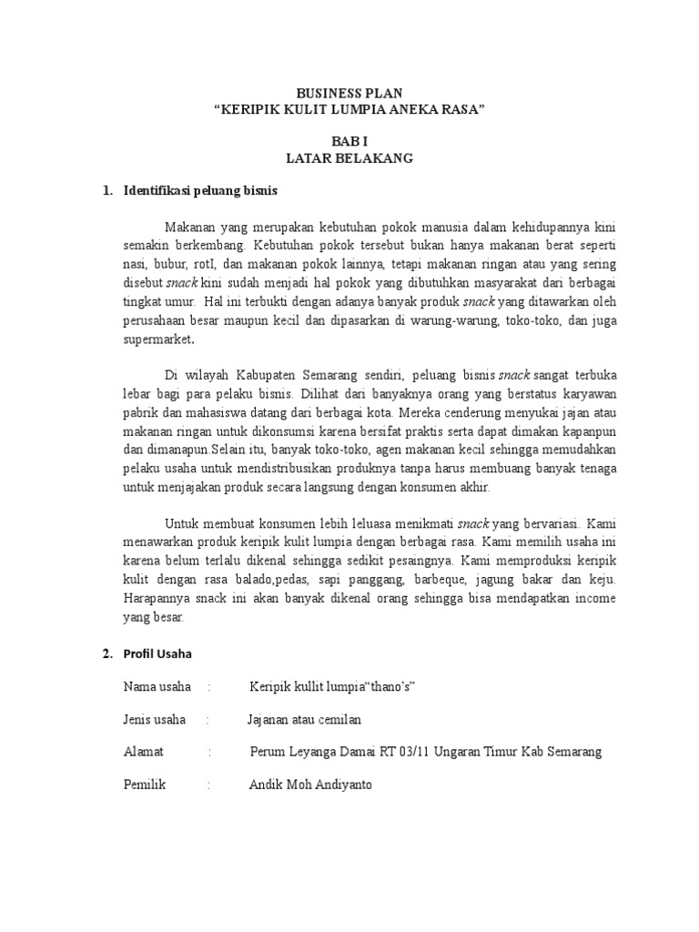 Bisnis Plan Kripik Lumpia Aneka Rasa Doc