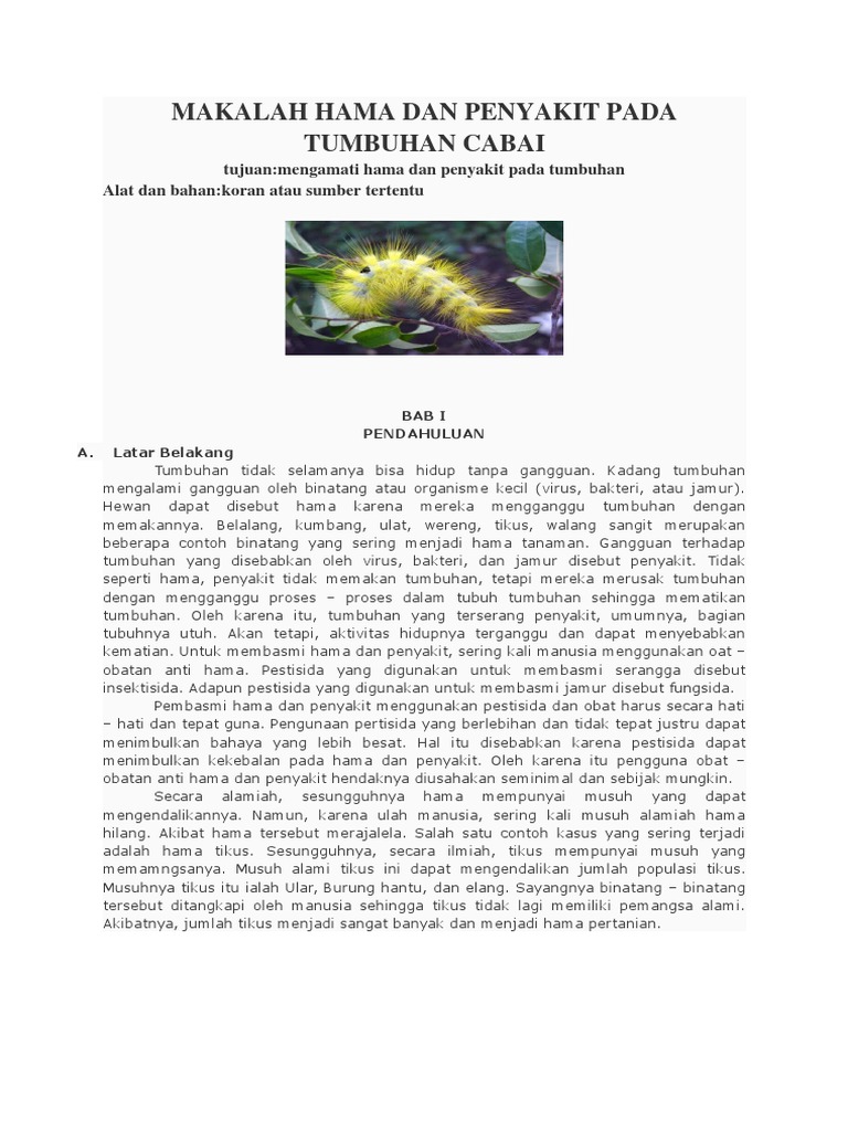 Jenis Hama dan Penyakit Pada Tanaman Cabai Berdasarkan Fase PertumbuhanDalam budidaya cabai baik itu cabai merah maupun cabai rawit. Hama memiliki kemampuan merusak tanaman yang sangat hebat. ISI DAN PEMBAHASAN Pengertian Hama dan PenyakitHama adalah semua binatang yang mengganggu dan merugikan tanaman yang dibudidayakan manusia.