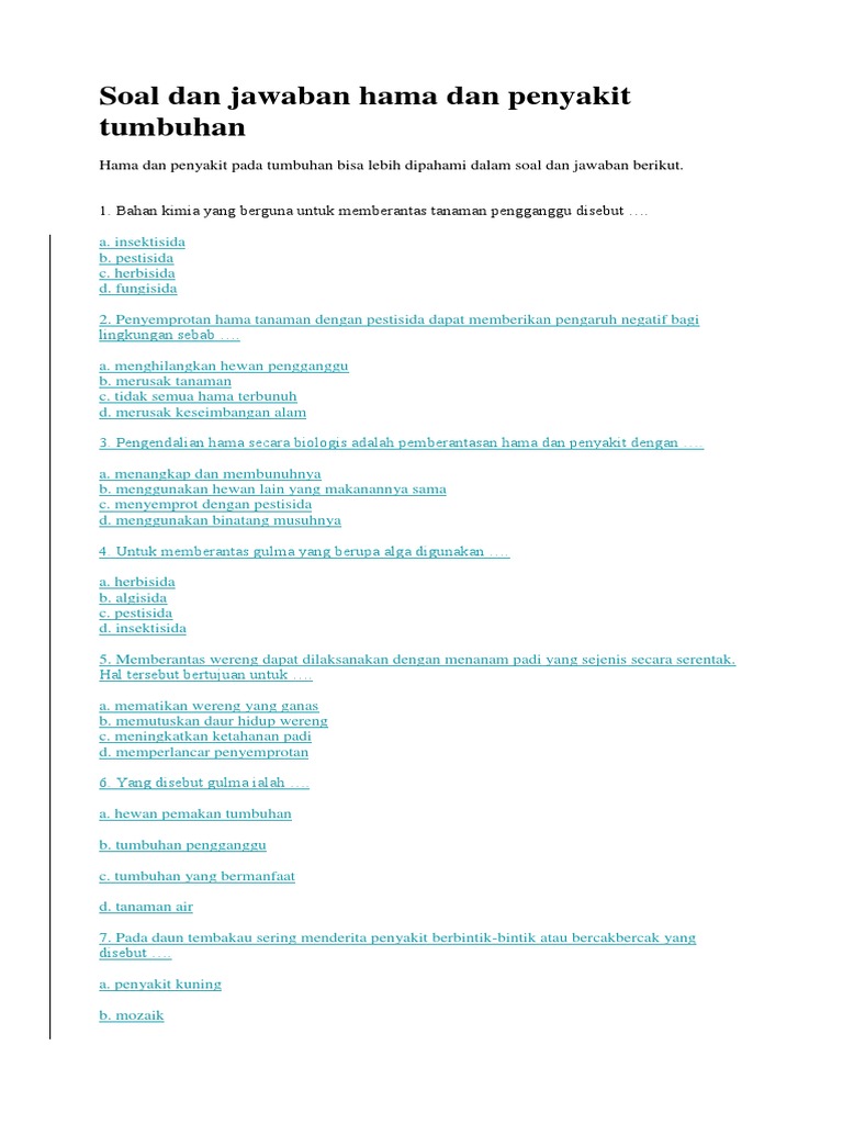 Soal Dan Jawaban Hama Dan Penyakit Tumbuhan