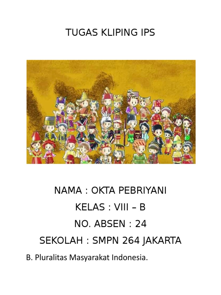 Kliping pluralitas masyarakat indonesia. Pluralitas Masyarakat Indonesia Video Pembelajaran IPS Kelas 8 BAB II PENGARUH INTERAKSI SOSIAL TERHADAP KEHIDUPAN SOSIAL DAN KEBANGSAANTujuan Pembelajaran. 23 Pluralitas Masyarakat Indonesia Kenyataan bahawa masyarakat indonesia merupakan suatu hal yang sudah sama-sama dimengerti. Video atau foto-foto tentang Pluralitas Masyarakat Indonesia Suku Bangsa yang ada di Indonesia yang bisa di download atau discreenshoot melalui jaringan internet 3.