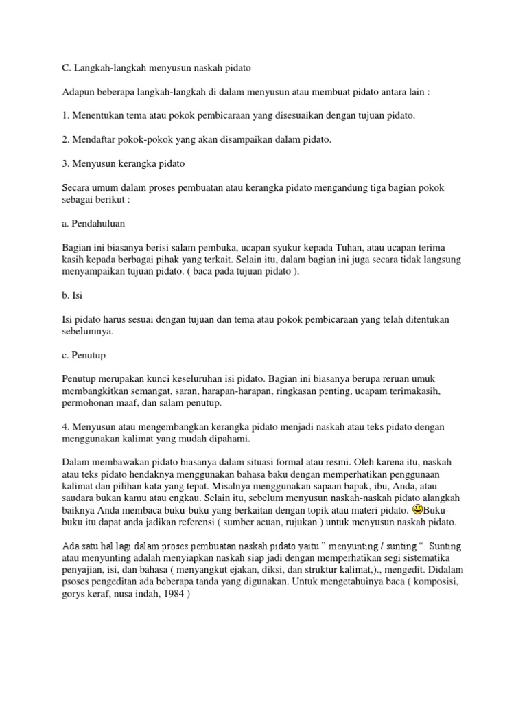 Adapun beberapa langkah-langkah di dalam menyusun atau membuat pidato antara lain. Berikut ini kerang naskah pidato. Religius lingkungan masyarakat sosial pendidikan dll.