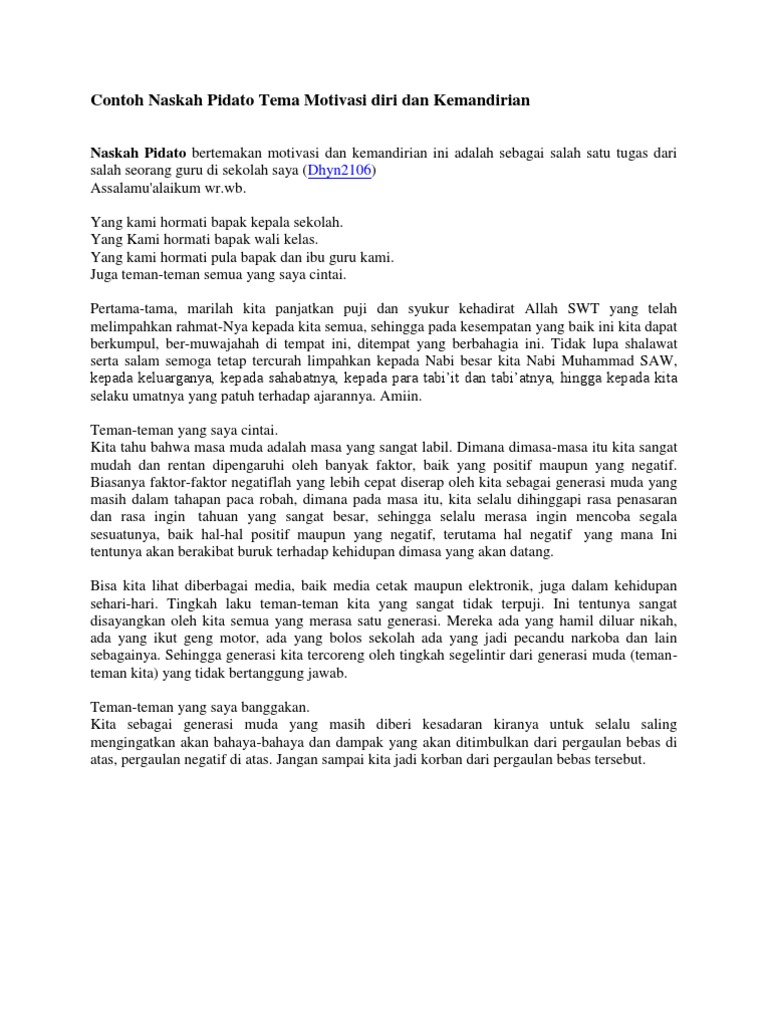 Contoh Naskah Pidato Tema Motivasi Diri Dan Kemandirian