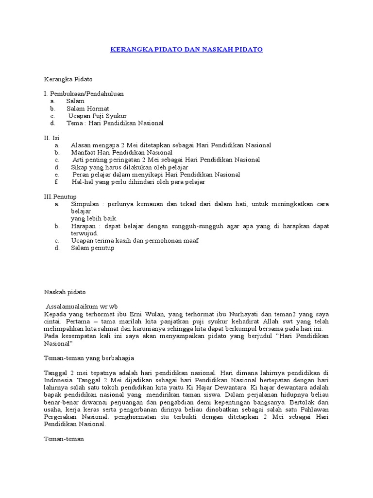 Kerangka Pidato Dan Naskah Pidato