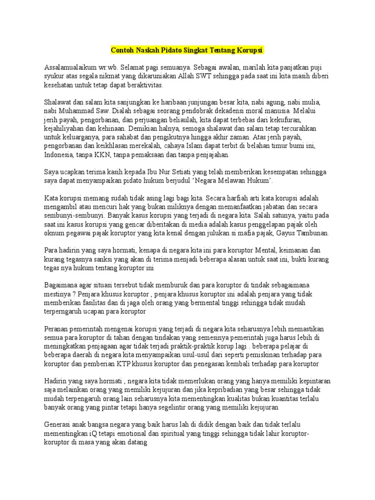 Contoh Naskah Pidato Singkat Tentang Korupsi Berita Terkini
