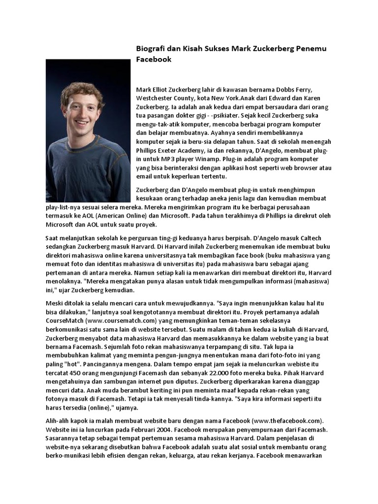 Biografi Dan Kisah Sukses Mark Zuckerberg Penemu Facebook