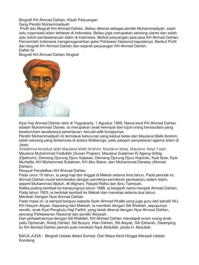 Biografi Singkat Kh Ahmad Dahlan Dan Muhammadiyah Bacaan Madani Bacaan Islami Dan Bacaan Masyarakat Madani