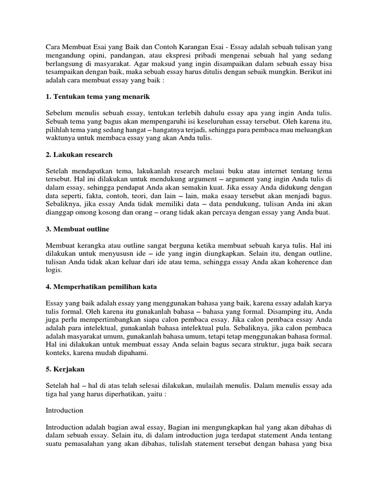 Doc Cara Membuat Esai Yang Baik Dan Contoh Karangan Esai Amazing Person Academia Edu