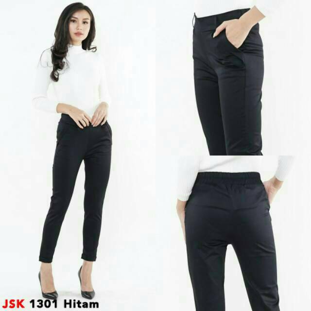 Celana Panjang Bahan Katun Pinggang Karet Kerja Kantor Formal Kuliah Gaul Pensil Cewek Wanita Jsk Shopee Indonesia